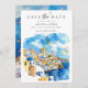 Voici notre magnifique carte de mariage Save the Date, parfaite pour ceux qui rêvent d'un mariage de destination à Santorin, Grèce. Cette carte élégante présente une belle aquarelle illustrant les bâtiments bleus et blancs emblématiques de Santorin, capturant l'horizon enchanteur de cette île grecque bien-aimée. Idéal pour un mariage de Santorin, cette carte de sauvegarde met en valeur le charme à couper le souffle de l'île, ce qui en fait la scène idéale pour votre journée spéciale. Le design élégant et l'aquarelle vibrante de l'art créent un souvenir intemporel, invitant vos proches à célébrer vos noces dans ce paradis pittoresque. Choisissez vos calendriers pour un mariage inoubliable à Santorin.