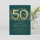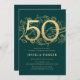 Elégante invitation à la fête du 50e anniversaire d'or vert. Design féminin moderne et personnalisable avec des accents botaniques rose et de l'or de parties scintillant faux. Carte invitation florale simple parfaite pour une célébration anniversaire élégante. Personnalisez avec vos propres détails. Invitations Zazzle imprimées ou téléchargement instantané modèle imprimable numérique.