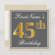 Ces caractéristiques de conception simples et élégantes d'invitation de fête d'anniversaire un message personnalisé comme "le quarante-cinquième anniversaire de FirstName" (avec le "quarante-cinquième" ayant un faux/imitation or-comme le regard de coloration) dans un secteur carré gris-coloré comportant un contour simple. Le nom dans un élégant blanc-est coloré manuscrit-comme le texte, et peut être personnalisé. Les caractéristiques arrières ont personnalisé des détails d'invitation. Une invitation de fête d'anniversaire comme ceci pourrait peut-être être employée en invitant des personnes à une fête d'anniversaire étant tenue pour quelqu'un qui célèbre leur cinquième anniversaire quarante. [~Z0000230]