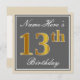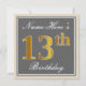 Invitation Elégant, gris, Faux Gold 13ème anniversaire + Nom