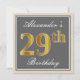 Invitation Elégant, gris, Faux Gold 29e anniversaire + Nom