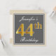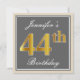 Invitation Elégant, gris, Faux Gold 44e anniversaire + Nom