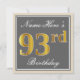Invitation Elégant, gris, Faux Gold 93ème anniversaire + Nom