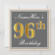 Invitation Elégant, gris, Faux Gold 96ème anniversaire + Nom