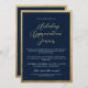 Invite your team, clients, or partners to a memorable evening with this elegant Holiday Appreciation Dinner invitation. Featuring a navy blue background with a gold border and refined script typography, this design exudes sophistication and festive charm. Perfect for corporate holiday parties, formal appreciation events, or end-of-year celebrations. Customize all text to fit your event details and create a polished invitation that sets the tone for a night of gratitude, dining, and cheer.