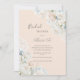 Beautiful hydrangeas with white peonies in full bloom and buds with lovely fonts and scripts bridal shower invite. Pastel peach background. A perfect bridal shower invitation for any season.