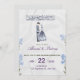 Une belle invitation de mariage islamique avec des accents floraux bleus doux et une mariée et un marié en dessin animé mignons. Parfait pour Nikah ou mariages musulmans traditionnels. Entièrement personnalisable avec vos noms et date.