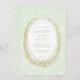 Cette faire-part de mariage verte est parfaite pour une mariée moderne qui apprécie un style vintage français. Le design comprend un cadre de couronne de laurier antique autour de vos détails mariages. Le design est sur un arrière - plan damassé vert clair.