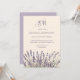 Élégante faire-part de mariage simple florale monogrammed dispose d'une délicate lavande fleurie dessinant avec arrière - plan chaud et beau doux support violet violet.