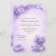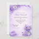 This pastel-toned illustration offers a charming and romantic backdrop for a birthday party invitation. Delicate lavender purple floral arrangements—roses, peonies, daisies—adorn the corners, each tied with a lavender gingham ribbon, while a soft yellow butterfly and a lavender gift box add playful touches. With its gentle textures and central blank space, the design invites joyful personalization, perfect for honoring someone special with elegance and warmth. The back of the card is a variation of the graphic on the front Personalize with your own information.