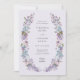 Préparez la scène pour un mariage romantique et joliment coordonné avec cette élégante invitation, avec une délicate couronne peinte à la main de lilas aquarelles aux teintes douces de lavande, de violet et de bleu, gracieusement entrelacée avec une végétation luxuriante. Le riche arrière - plan de lavande met en valeur le design floral, créant un look raffiné et sophistiqué qui convient parfaitement aux mariages du printemps et de l'été. Personnalisez chaque détail avec facilité : ajustez le libellé, les styles et les tailles de police pour refléter votre histoire d'amour unique. Une invitation intemporelle qui saisit l'essence du romantisme et donne le ton parfait pour votre journée spéciale.