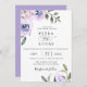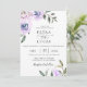 Belle aquarelle lavande fleurs botaniques et feuillage vert doux, faire-part de mariage. Le dos de la carte, en couleur lavande solide, peut être customisé.