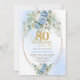 Invitation Elegant Light Blue Peony Floral Gold 80th Birthday