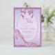 Belle invitation d'anniversaire féminine élégante et classe, élégante. Design branché d'un joli bijou en pierre de rhinocéros gem lilac stiletto talon haute chaussure, un chic glamour assorti bijou diamant arc sur une jolie perle vintage et tapis en dentelle, le tout sur un arrière - plan lilas étonnant et un cadre de parties scintillant brillant sur une bordure lilas foncé. Design d'anniversaire sophistiqué adapté à tout événement. Tout le texte, la police et la couleur de police sont entièrement personnalisables pour répondre à vos besoins. Si vous désirez de l'aide pour customiser votre produit ou si vous désirez des produits correspondants, veuillez me contacter par l'intermédiaire de mon magasin et je serai très heureux de vous aider. Tapis de perle par ©Hazel Kinvig-Paul www.design-a-dream.co.