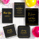 Cette élégante invitation d'anniversaire en noir et or est parfaite pour un anniversaire moderne. le design simple présente une calligraphie dorée élégante sur un arrière - plan noir.