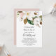 Cette élégante invitation à la magnolia blanche et rousse Bat mitzvah est parfaite pour une bat mitzvah moderne et classe. La décoration florale douce est composée de pivoines roses vertes et aquarelles, de magnifiques fleurs de magnolia blanches et de coton avec de l'or et des feuilles verts dans un agencement luxueux.