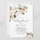 Cette élégante invitation au brunch mariage blanc et roux magnolia est parfaite pour un événement moderne et classe. La décoration florale douce est composée de pivoines roses vertes et aquarelles, de magnifiques fleurs de magnolia blanches et de coton avec de l'or et des feuilles verts dans un agencement luxueux. Personnalisez le dos de la carte avec les noms de la mariée et du marié.