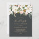Cette élégante faire-part de mariage en noir et blanc de magnolia est parfaite pour un mariage de classe moderne. Le design floral moody est composé de pivoines roses d'aquarelle, de magnifiques fleurs de magnolia blanches et de coton avec de l'or et des feuilles verts dans un agencement luxueux sur un arrière - plan sombre.