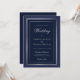 Une invitation de mariage bleu foncé élégante avec une double bordure argentée.