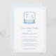 Cet élégant design de faire-part de mariage bleu et blanc présente mes illustrations d'aquarelle d'origine (les hydrangées de jarre de gingembre / feuilles et la forme de crête). La crête monographique est entourée d'une bordure "clé grecque" et au fond, d'un support motif "clé grecque". Vous pouvez modifier la couleur de contraste de la touche grecque à l'avant et à l'arrière (représentée ici en bleu clair) en n'importe quelle couleur de votre choix en entrant dans l'outil de conception (sous la zone de personnalisation du texte, cliquez pour "customiser plus loin"), puis en modifiant la couleur arrière - plan de chaque calque.