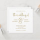 Cette magnifique invitation carré présente un arrière - plan blanc avec une typographie manuscrite de script manuscrite en faux or moderne. Un look faire-part de mariage simple et contemporain avec une esperluette fleurie et texte assorti audacieux.