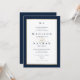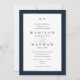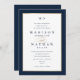Cette Elégante Marine Bleue et Or Faire-part de mariage est simple et polyvalente. Il présente un design chic avec un monogramme, des détails de script, un cadre doré simple et un texte formel modifiable. Cliquez sur le bouton Modifier pour customiser cette conception.