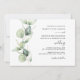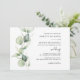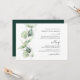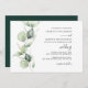 Eucalyptus Greenery Fête des mariées Script Invitation modèle vous pouvez facilement éditer pour votre mariage et il est parfait pour un mariage élégant chic. Doté de feuillage d'eucalyptus et de typographie moderne sur arrière - plan blanc. À l'envers se trouve un arrière - plan vert émeraude clair avec une sensation boho