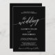 Cette carte d'invitation de mariage à la calligraphie noire et blanche est parfaite pour un mariage simple. Le design neutre présente une carte minimaliste noire décorée d'une typographie blanche romantique et fantaisiste.