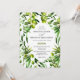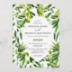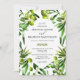 Faire-part de mariage de verdure à cadre blanc feuille d'olive. Invitation votre famille et vos amis à votre mariage avec notre invitation de mariage campagnard personnalisable. Notre invitation mariage campagnard présente des feuilles d'olivier et des plante à l'aquarelle avec leurs détails sur un cadre blanc. Il est parfait pour les mariages et les mariages campagnards d'été.