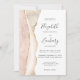 Le bord gauche de cette élégante faire-part de mariage moderne est doté d'une bordure en aquarelle dans les tons ivoire et blush, bordée d'une parties scintillant en faux or. Le texte personnalisable combine écriture manuscrite, copperplate et polices italiques en gris fusain sur un arrière - plan blanc. L'envers est assorti d'un design d'agate en ivoire et en or.