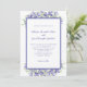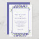 Le design botanique élégant présente un bel agencement floral dans des teintes et des teintes variées de bleu périvent tendance sur une douce végétation luxuriante. Personnalisez le design mariage avec vos détails en lettres bleues et en script sur un arrière - plan blanc encadré dans Les invitations retour correspond en bleu massif.
