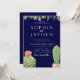 Invitation Elégant Mariage d'aquarelle bleu marine cactus