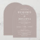 Elégante faire-part de mariage en arc avec un arrière - plan crème naturelle et des lettres blanches. Conception uniquement textuelle avec un libellé traditionnel. Options de papier imprimé numérique ou physique. Personnalisez-le avec les noms de M. et Mme, l'emplacement du lieu, le registre, les informations RSVP et tous les détails que vous devez inclure. Produits de suite correspondants disponibles.