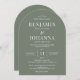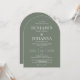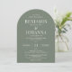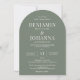 Elégante faire-part de mariage en arc avec arrière - plan vert mousse et lettres blanches. Conception uniquement textuelle avec un libellé traditionnel. Options de papier imprimé numérique ou physique. Personnalisez-le avec les noms de M. et Mme, l'emplacement du lieu, le registre, les informations RSVP et tous les détails que vous devez inclure. Produits de suite correspondants disponibles.
