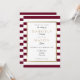 Cette faire-part de mariage chic est ornée d'une élégante bordure en feuille d'or qui encadre vos détails mariages dans une typographie moderne sur un arrière - plan à rayures bordeaux et blanc élégant. Conçu par Thisisnotme©