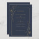 Invitation Elégant Mariage de cadre bleu marine et or floral