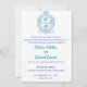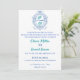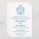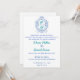 Cette faire-part de mariage présente un élégant design d'art en ligne bleue avec un cadre ovale orné orné de motifs floraux, de rubans et d'arcs. Les détails complexes créent un look vintage et raffiné sur un arrière - plan blanc, parfait pour un thème mariage traditionnel ou formel.