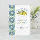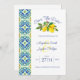 Capturez l'essence d'un mariage d'été méditerranéen au citron avec notre Elégant Mariage de citron Jaune Enregistrer la Carte Date. La délicate combinaison de jaune citron clair et de tons bleus vous transportera dans les paysages pittoresques de la Toscane et du Maroc, ce qui en fait le choix idéal pour les couples à la recherche d'un thème de mariage dynamique et élégant. Associez cette carte Save the Date à la collection de suite faire-part de mariage correspondante pour un look cohésif et sophistiqué qui laissera une impression durable sur vos invités. L'écriture complexe et le design typographique ajoutent une touche de luxe, tandis que les motifs d'inspiration marocaine évoquent un sentiment de romantisme et de charme. Personnalisez facilement les noms de la mariée et du marié et la date du mariage. Commandez votre Elegant Mariage de citron jaune Enregistrez la Carte Date dès aujourd'hui et commencez à planifier le mariage de vos rêves.
