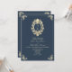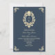 Célébrez votre grande journée dans un style intemporel avec cet élégant faire-part de mariage bleu marine aux accents dorés ornés et une crête de monogramme royale. L'arrière - plan de la marine profonde ajoute de la sophistication, tandis que le code QR à l'arrière rend l'accès au site RSVP et mariage simple pour les invités. Un mélange parfait d'élégance traditionnelle et de commodité moderne, idéal pour un mariage classique d'automne ou d'hiver.