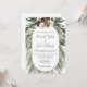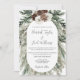 Cette élégante invitation à cône de pin d'hiver est parfaite pour un mariage de vacances élégant. Le design présente de belles fleurs blanches d'aquarelle avec des cônes de pin et de la végétation forestière. Il s'agit d'une palette de couleurs parfaite pour un mariage d'hiver. Faites cette invitation vous-même en incluant vos noms et tous vos détails mariages. Pour plus de personnalisation, utilisez l'outil de conception avancée pour modifier ce modèle.