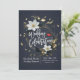 Invitation Élégant Mariage de couronnes florales noir blanc e