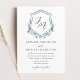 Invitation Élégant Mariage de crête florale bleu-dusty