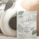 Esthétique design élégant et simpliste, avec de grands feuilles verts sauge, le tout design original peint en aquarelle. Complète avec la typographie manuscrite et facile à modifier du texte.