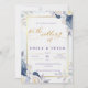 Invitation Elégant Mariage de frontière bleu floral or Dusty