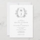Une élégante invitation de mariage comprend une crête d'art botanique avec votre monogramme. Personnalisez avec tous les détails importants tels que vos noms, la date du mariage, l'heure et l'emplacement du lieu. L'envers est coordonné en noir
