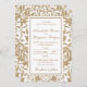 Ce magnifique design présente un imprimé damassé en parties scintillant dorée avec un arrière - plan blanc, qui peut être changé à la couleur de votre choix. Une élégance parfaite pour un mariage d'hiver ! Customisez-le avec tous vos détails pour en faire le vôtre !