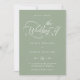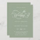 Elégant faire-part de mariage vert sauge avec calligraphie tourbillonnant romantique avec détails sur le dos. Parfait pour toute saison. Pour une personnalisation plus avancée de cette conception, cliquez sur le BOUTON OUTIL DESIGN BLEU ci-dessus !