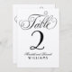 Chaque carte de numéro de table doit être customisée et ajoutée individuellement au panier. Elégant métal argent (peut être modifié) et noir design belle écriture de script et un monogramme mariage qui apparaît avec le numéro de table sur les deux côtés de la carte (conception biface).
