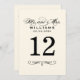 REMARQUE : Chaque carte de numéro de table doit être customisée et ajoutée individuellement au panier. La carte élégante comprend un monogramme M et Mme prospère avec des accents de calligraphie noire et de design de défilement. Design à deux côtés. Pour changer la couleur arrière - plan (ivoire blanc doux), allez à Personnaliser / Édition / Arrière - plan.