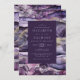 Un design abstrait élégant dans les tons d'encre d'alcool violet et or fournit l'arrière - plan pour le texte lilas sur un rectangle violet. La conception de l'encre est répétée au dos de la carte.